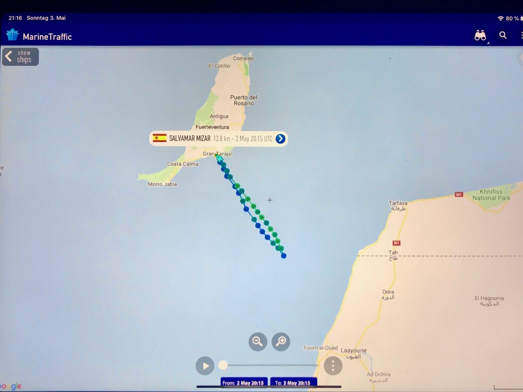 Hallo Olaf, die Segelsaison scheint ja nun bei euch langsam zu beginnen. Kutterstag montiert liest sich auch gut. Wünschen wir dir- und Claudia nun einen baldigen Start auf offene See. Wir warten auf ein Wetterfenster Richtung Nord. Vielleicht können wir ja auch vorher noch Lanzarote und Graciosa erkunden. Werden natürlich weiter berichten. Danke für deine Kommentare. Freuen uns immer darüber. Crew Elisa