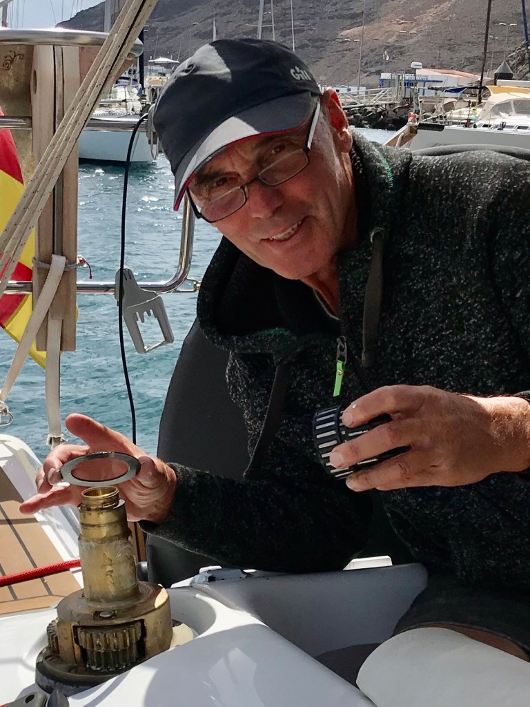 Leider sind in unserem jetzigen Hafen keine Segler mit ähnlichen Zielen wie wir. Pech gehabt! Unsere Stegnachbarn kommen aus Osteuropa und Frankreich. Die Meisten leben hier schon seit Monaten auf ihren Schiffen und wollen noch länger bleiben. Also keine aktive Segelgemeinschaft! Eher Aussteiger mit zusätzlichen Sprachbarrieren für uns. Lediglich Paul, der deutsche Weltumsegler, kommt gelegentlich zum Plausch- oder ich gehe mal rüber. Paul hat hier im Hafen fünf Segelboote! Diese sammelt er wie andere Briefmarken. Er kommt mit allen seinen Booten auf fast 60 Meter Gesamtlänge👍 So hat er schon seit Jahren alle Hände voll zu tun. Paul ist mit seiner 5-köpfigen Familie zweimal um die Welt gesegelt. Seine Tochter kam an Bord zur Welt. „Das ist lange her“, sagt er. Was er mit den Booten mal machen will ist noch unklar und vielleicht auch garnicht so wichtig. Hauptsache er habe etwas zu tun und ist auf dem Wasser. Beruflich war er Pilot bei der Bundeswehr. Interessanter Typ mit unendlich vielen Segelgeschichten. Gegen die viele Arbeit die sich Paul aufgeladen hat, ist meine Pflege und Wartung der 6 Winschen nicht der Rede wert.