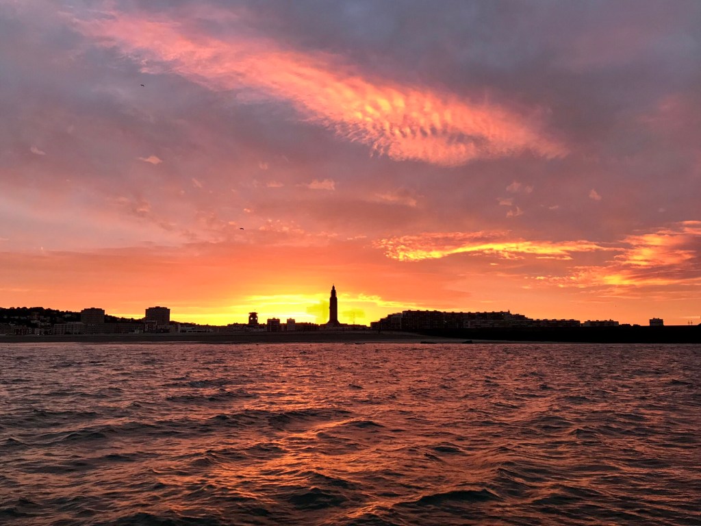 Den Törn aus der Bucht von Saint-Malo haben wir in einem Rutsch gemacht. Das waren 85 Seemeilen für die wir schon um 5 Uhr morgens los segeln mußten. Wie schon geschrieben, sind die Kanalinseln (Jersey, Guernsey, Alderney) wegen Corona nur mit Quarantänezeit zugänglich. Nun sind wir schon in Le Havre, die Flussmündung der Seine. Wer gerne mit Motor segelt😜, kann noch ein ganzes Stück Richtung Paris flussaufwärts. Wir wollen das nicht und gehen weiter nordöstlich in den englischen Kanal. 8,5 Meter Tidenhub bleiben uns noch eine Weile erhalten. Ebbe und Flut sind auch hier besonders stark.