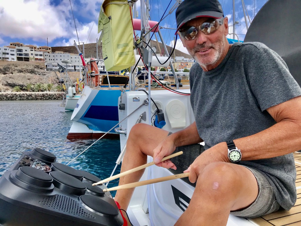 Bücher und Seekarten müssen wohl immer noch dabei sein. Die dicken Wälzer bringen ordentlich Gewicht auf die Waage! Der „Reeds-Allmanach“, ein Jahrbuch für die Atlantische Westküste, war oft hilfreich. Leider ist er nur in englischer Sprache gedruckt. Seekarten haben wir uns von Knut, unserem Segelfreund geliehen. Es sind „Imray“ Karten. Wir haben sie eigentlich nicht gebraucht. Die elektrischen Karten von „Navionics“ gefallen uns gut und sind digital auf unseren Bildschirmen einzusehen- und zu Sicherheit auch noch auf dem I-pad. Bleiben noch die vielen Revierführer, die tonnenschwer😜 unser Boot verlangsamt haben. Diese würden wir beim nächsten Mal wohl zu Hause lassen. Eigentlich steht ja auch alles im Internet. Nur gut, dass Bernadette ein e-book mit hatte. Das ist schön leicht und hat ihr auch gut gefallen. Was wäre das ein Berg Bücher geworden den sie gelesen hat! Ich hatte als Zeitvertreib ein Minischlagzeug- und eine Gitarre mit.🥁