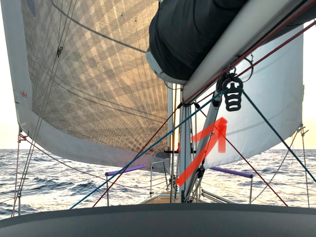 Unsere „Großbaumbremse“ empfanden wir als wichtigstes Sicherheitszubehör an Bord. (…ähnlich wie der Sicherheitsgurt im Auto!) Wir setzen die Baumbremse fast immer direkt nach dem Ablegen! Sie verhindert, das der Grossbaum unkontrolliert von einer- auf die andere Schiffsseite schlägt. Zudem fixiert die Bremse den Großbaum bei Seegang und hält ihn ruhig.