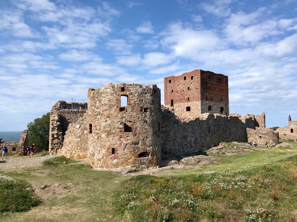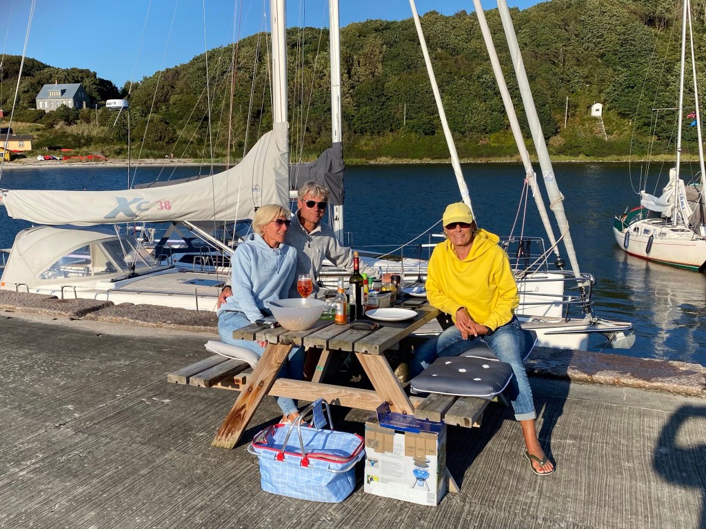 Nach kleiner Regatta haben wir uns gleich mit unseren Bootsnachbarn angefreundet und eine schöne Zeit gehabt. Hier kann man herrlich wandern und zur alten Burg Hammershus. Am Abend dann lecker grillen am Steg mit Blick auf unsere Boote.