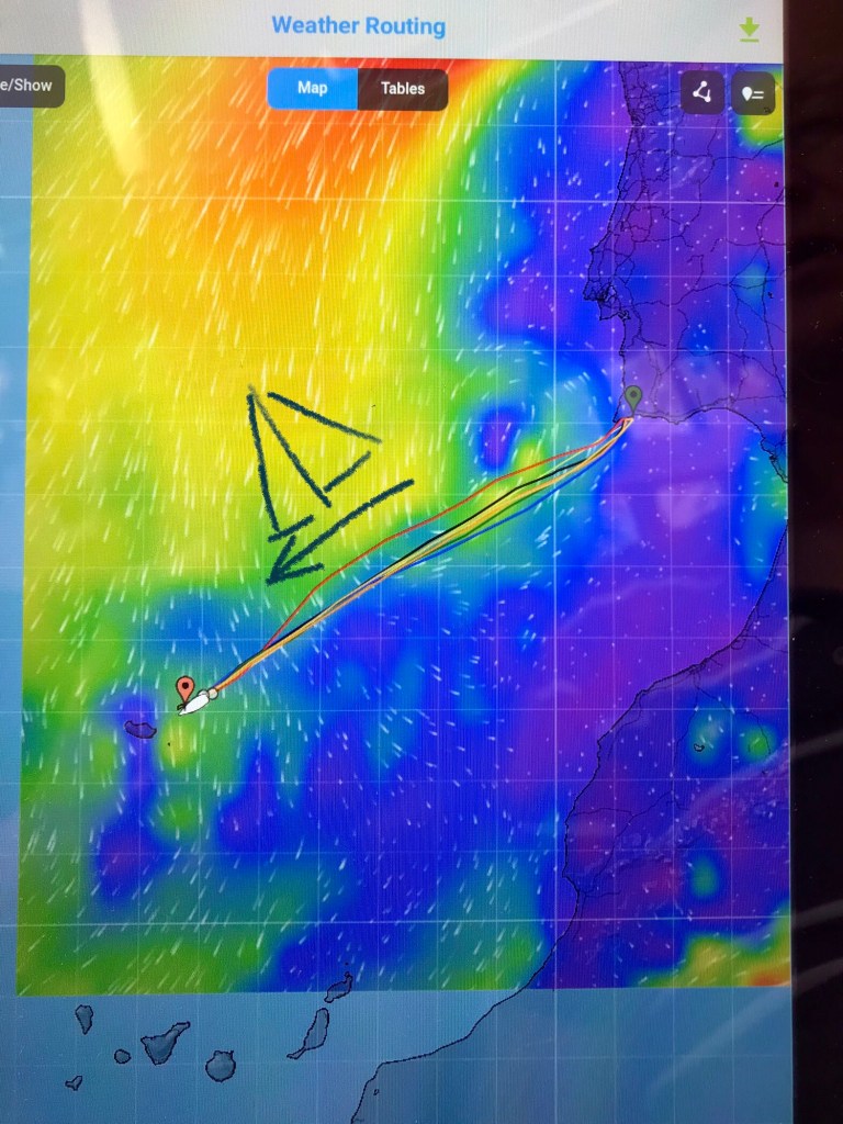 An Steuerbord begleitete uns Nachts das bekannte Sternbild des „Großen Wagen“. Die symbolisch gedachte Karre hängt in diesen Breiten so tief am Himmel, dass man glaubt, sie fährt auf dem Atlantik. Da sie uns bildlich entgegen kam, haben wir sie mit Frieden beladen und an die richtige Adresse gen Nordost geschickt! Wie schön ein friedliches Leben ist, durften wir auf dieser 3 1/2 tägigen Reise nach Porto Santo erleben. Mit 4500 Meter Wasser unter unserem Kiel segelte Elisa diese Etappe mal geduldig, mal temperamentvoll.