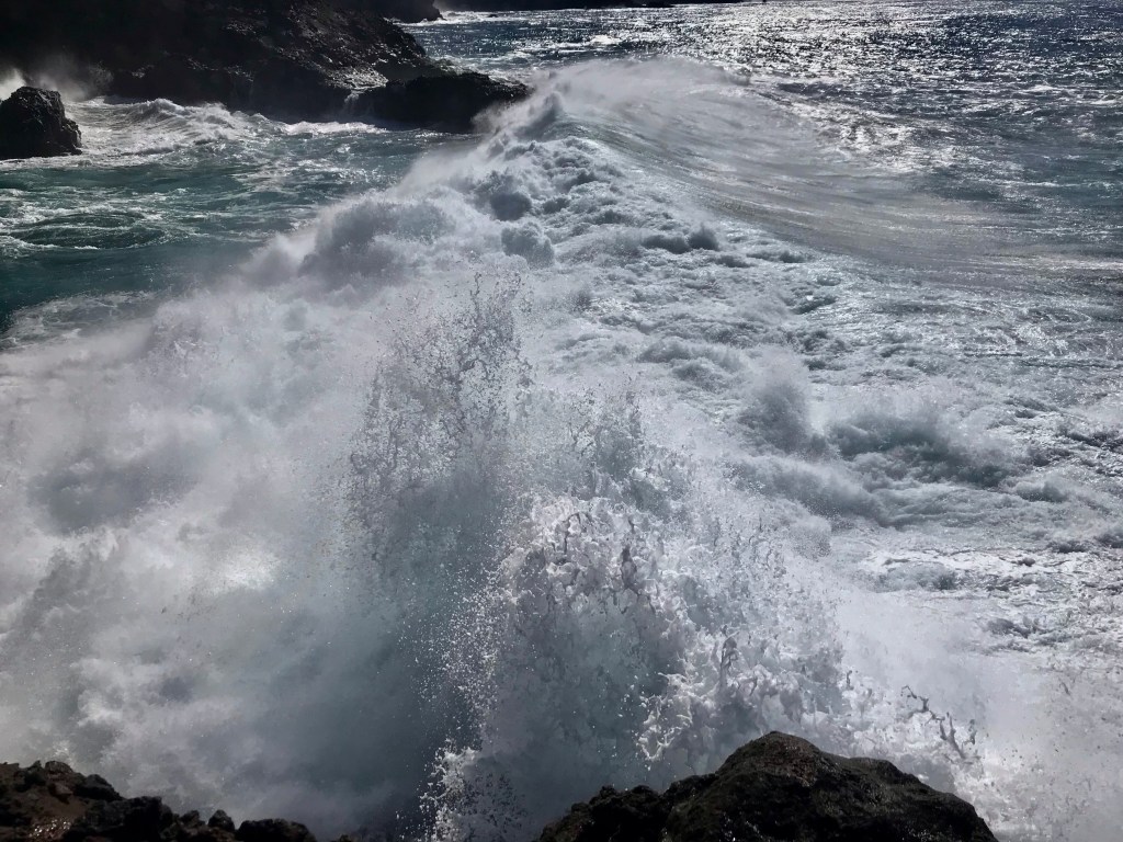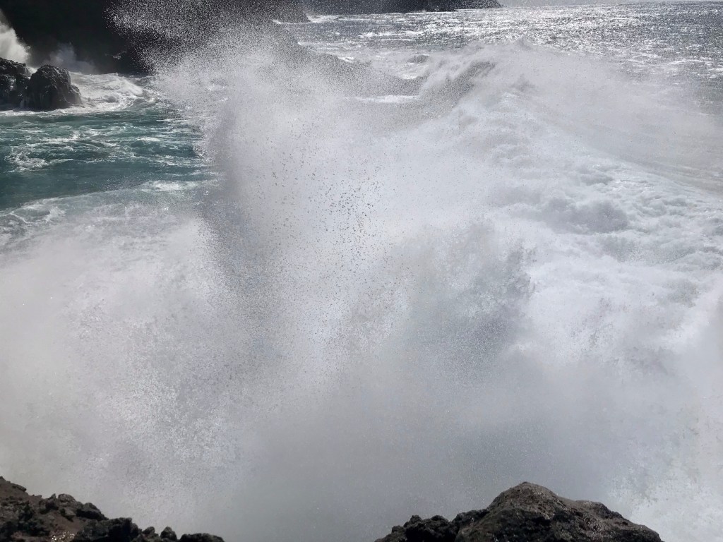 Mit dem Auto sind wir zum alten Handelshafen, „Puerto de Sto. Domingo“ gefahren. Hier sollen ganz früher Handelsschiffe vor Anker gelegen haben und mit kleinen Booten Be- und Entladen worden sein. Das war sicher beschwerlich/gefährlich!