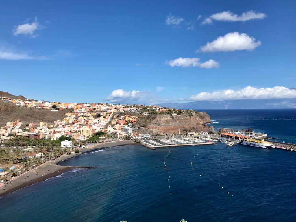 Von „El Hierro“ sind wir nach „La Gomera“ gesegelt. Ein kurzer Törn von 35 Seemeilen. Kaum der Rede wert. Da wir im Hauptstadthafen, „San Sebastian“ nicht sofort einen Platz bekamen, haben wir 4 Tage im Westen von „Gomera“ vor Anker gelegen.