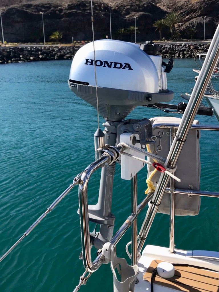 Gestern haben wir endlich einen Motor für unser neues Beiboot bekommen. So sind wir jetzt beweglich, wenn wir vor Anker liegen. Südlich von Lanzarote soll es gute Ankermöglichkeiten geben. Den Strand von Papagayo werden wir dann mit dem Dinghy ansteuern.