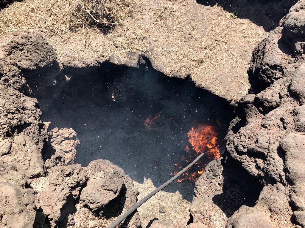 Ein Teil der Insel wird für den Weinanbau genutzt. Es gibt viele Weinbauern in diesem Gebiet. Nachts, wenn es kälter wird, werden die Reben mit Tauwasser versorgt, welches sich in den trichterförmigen Mulden sammelt.