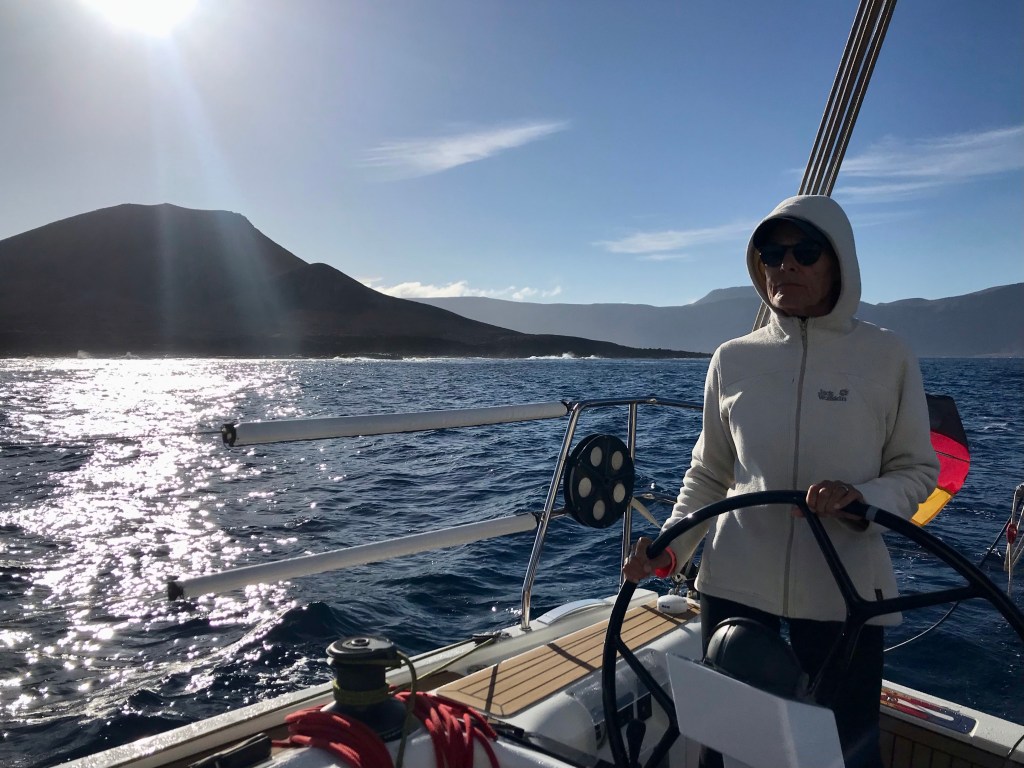 Der 285 Seemeilen Tön von Lanzarote bis hier hatte fairen Wind aber „eckigen“ Seegang. „Elisa“ schaukelte, hoch am Wind, wirre in den whirlpool ähnlichen Wellen. Das Leben unter Deck war beschwerlich. Knapp 2 Tage waren wir unterwegs bis der Anker früh Morgens um 3:45 Uhr in den weichen Sand vor Porto-Santo fiel.