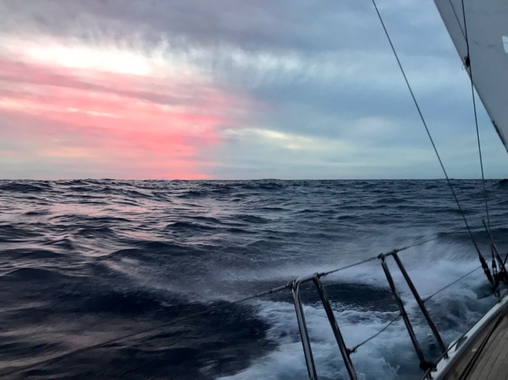 Der ungleichmäßige Seegang entsteht weil die Dünung des Atlantik zwischen den Kanaren, Madeira und Afrika hin und her schwappt und sich somit Wellenechos bilden. Strömung und Windsee bringen dann nochmals alles durcheinander. Wie muss das hier sein, wenn richtig Sturm ist?😖