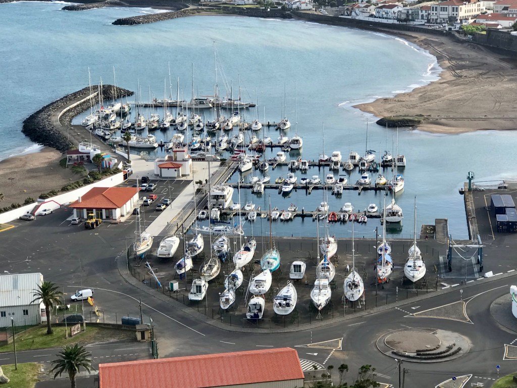 Mit dem 91 Seemeilen Törn nach „Terceira“ sind wir nochmals eine Insel weiter gesegelt. 13 Stunden schnelles Segeln waren trotz kabbeliger Welle, Regenschauern und Windböen eine sportliche Einlage die Spass gemacht hat. Im Hafen von „Praja do Vitória“ wurden wir von Ursel und Rainer, von der „Lille-Swan“ empfangen. Das war sehr schön und es gibt gleich viel zu erzählen. (PS. Ursel und Rainer sind mit ihrer damaligen „Thule“ schon einmal in 3 Jahren um die Welt gesegelt!👍)