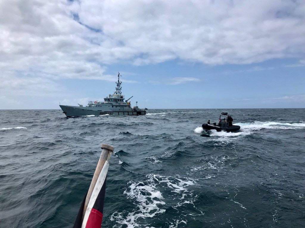 Wer bis hier gelesen hat wird den Eindruck haben, dass wir England mögen. Das stimmt auch. Hier sind sehr freundliche Menschen und die Landschaft ist beeindruckend. Aber da gibt es leider Ausnahmen und die gehen garnicht! Wir sind von einer sogenannten „Border-Force“ geentert worden! Auf der Segelstrecke von Falmouth nach Plymouth kamen am letzten Sonntag drei, im Kampfanzug gekleidete, Männer bei uns an Bord. Sie haben uns auf See geentert und mit ihren PS-starken Beiboot gerammt und vom Kurs gedrängt. Ohne Vorwarnung, ohne Verstand, ohne Grund!