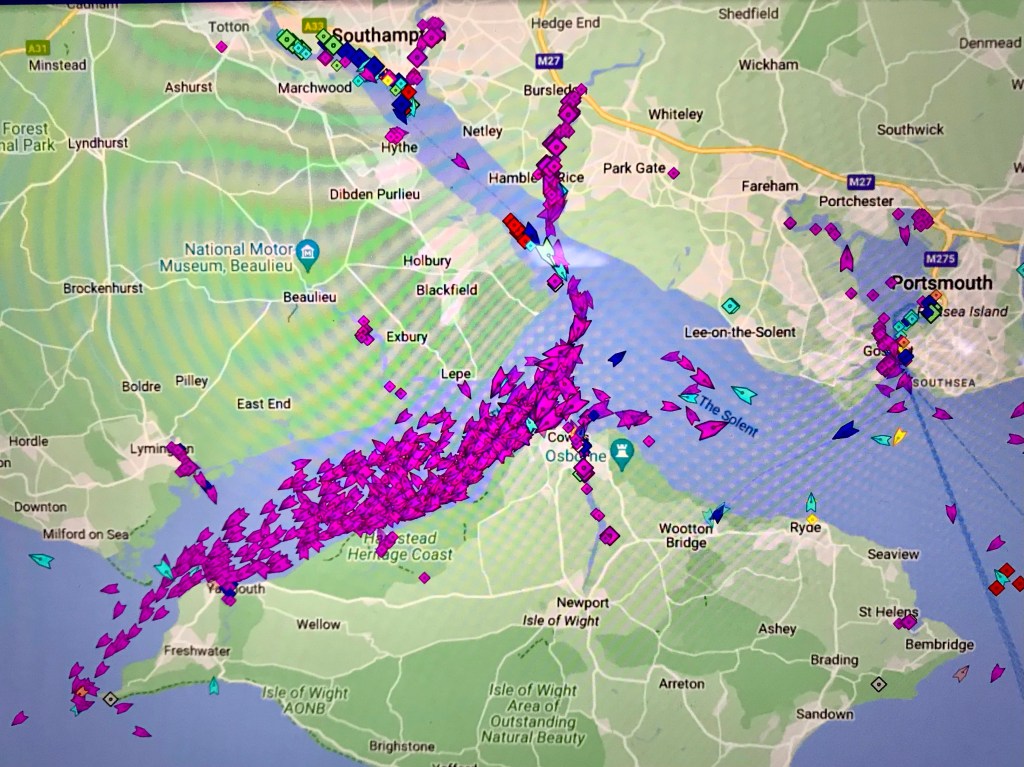Seit gut 2 Wochen sind wir in England und segeln vor der Südküste Richtung Ost. Immer wieder kommen wir an Buchten vorbei, die sich ins Land schneiden. Hier ist man geschützt und wir können meistens ankern. Die Städtenamen der Buchten haben oft die Endung „mouth“! Ein echter Zungenbrecher wenn man sich über Funk anmelden muss. Zur Zeit liegen wir in „Portsmouth“, am östlichen Ende des Solent.
