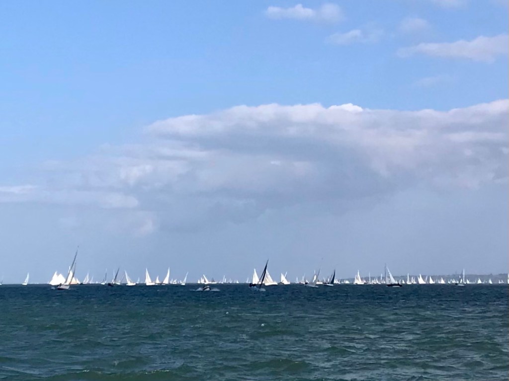 Deutsche Boote und Flaggen sind kaum zu finden. Seit Tagen haben wir keines gesehen. Dafür aber die legendäre Regatta „Rund Isle of Wight“. Die Teilnehmerzahl an Booten ließ uns aufhorchen. 200 Boote wären ja schon viel- hier waren es wohl dieses Jahr 1.100 Boote! Wir haben sie nicht gezählt.