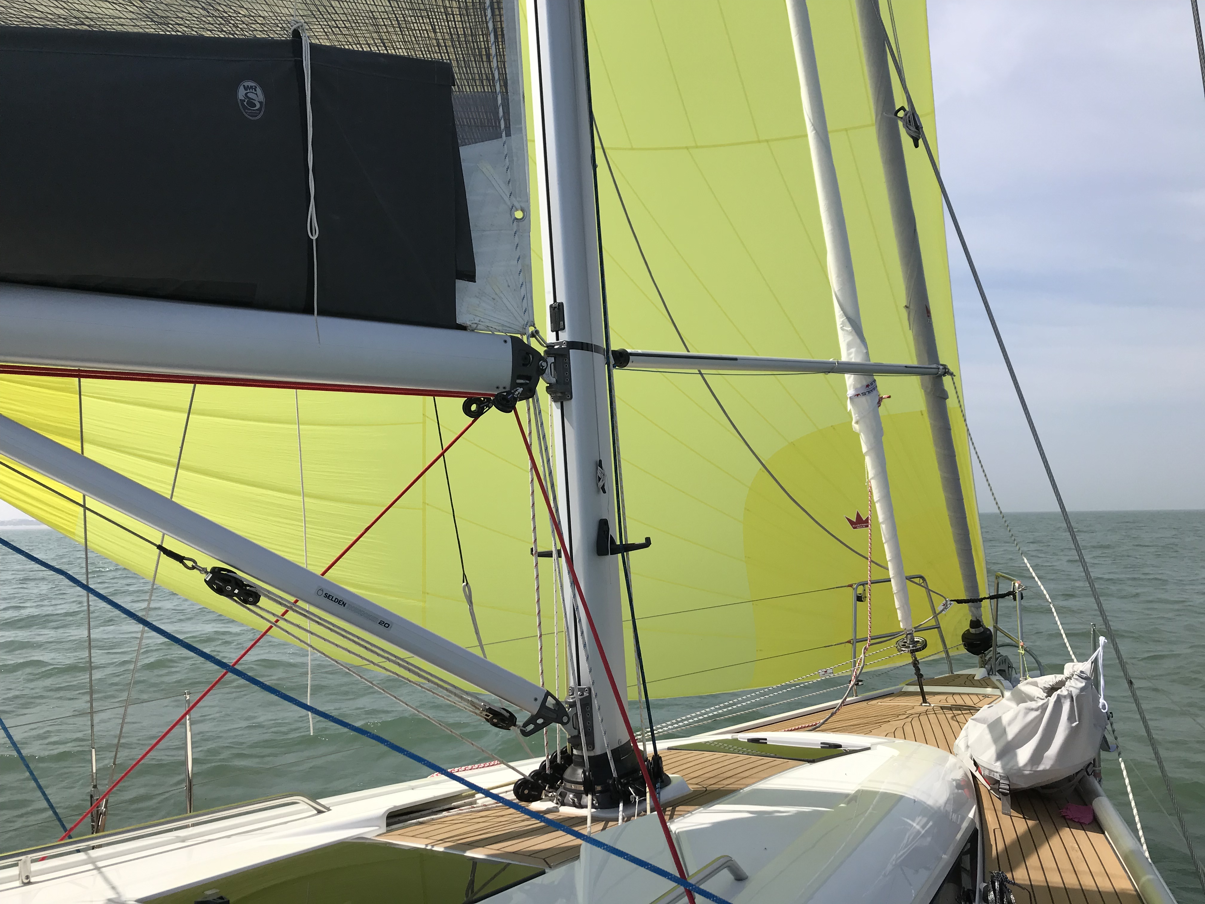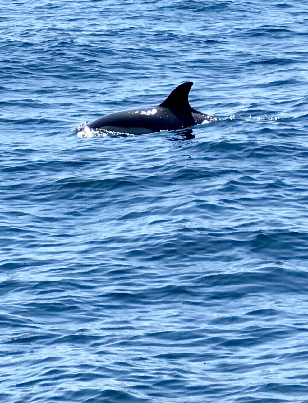 Hier gibt es viele Delphine. Wenn sie auftauchen sind wir jedesmal aus dem Häuschen. Bei der letzten Begegnung mit den eleganten Tieren hatten wir unseren großen Gennaker oben. (gelbes, ca. 110qm großes Segel für Winde von schräg hinten.) Die Gier nach dem perfekten Foto ließ uns über unser Deck springen. Dabei haben wir das gelbe Segel komplett aus den Augen verloren. Dies hat sich dann selbstständig gemacht und unbemerkt so oft um unsere beiden Vorstage gewickelt, dass wir das Chaos mit dem riesigen Tuch kaum noch enttüddeln konnten🤨 Die Delphine sind wie Kinder und können einfach nicht stillhalten.