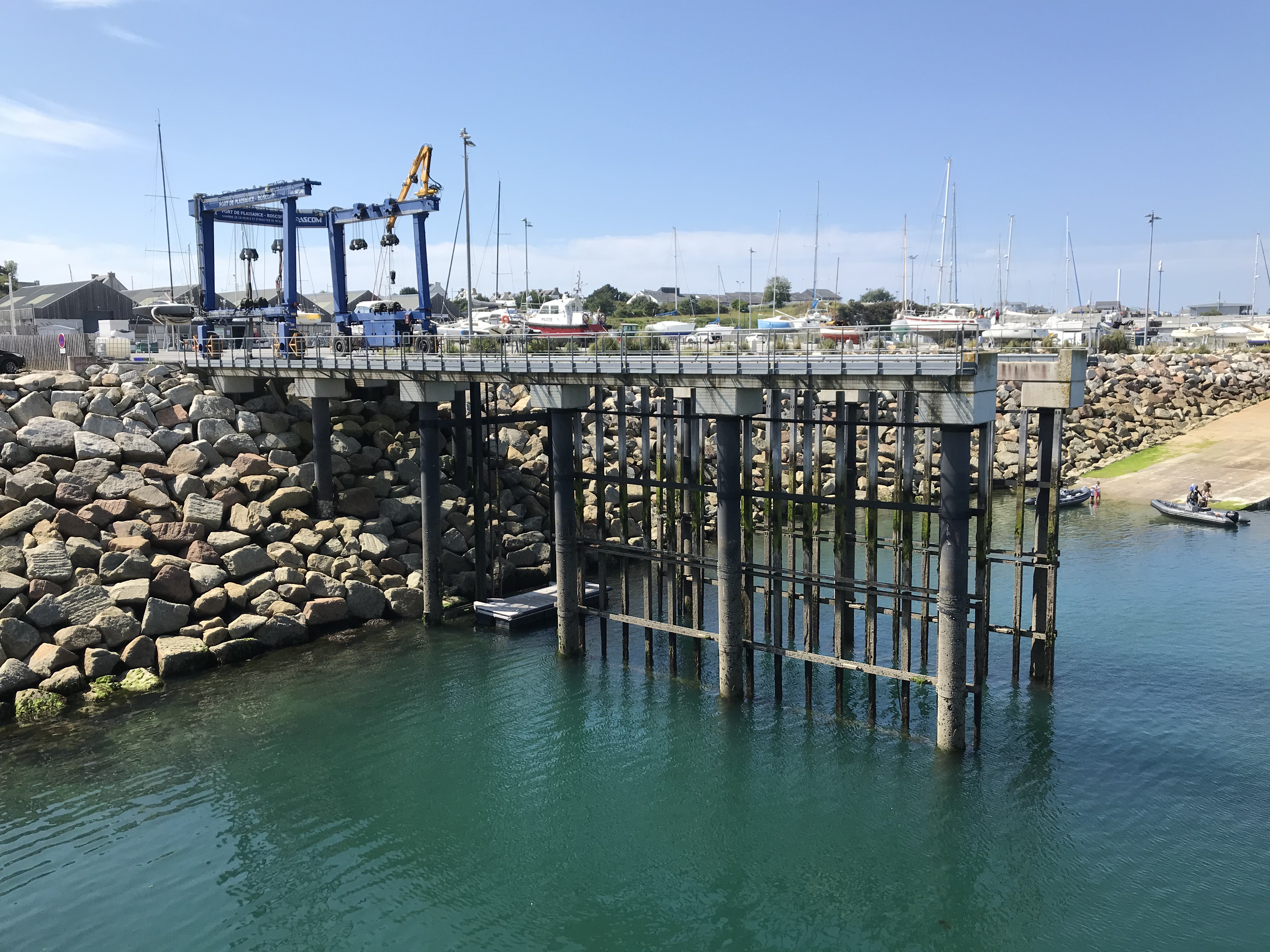 Wie tief das Wasser bei Niedrigwasser fällt kann man hier gut erkennen- und was für ein Aufwand für diesen Bootskran betrieben wurde.