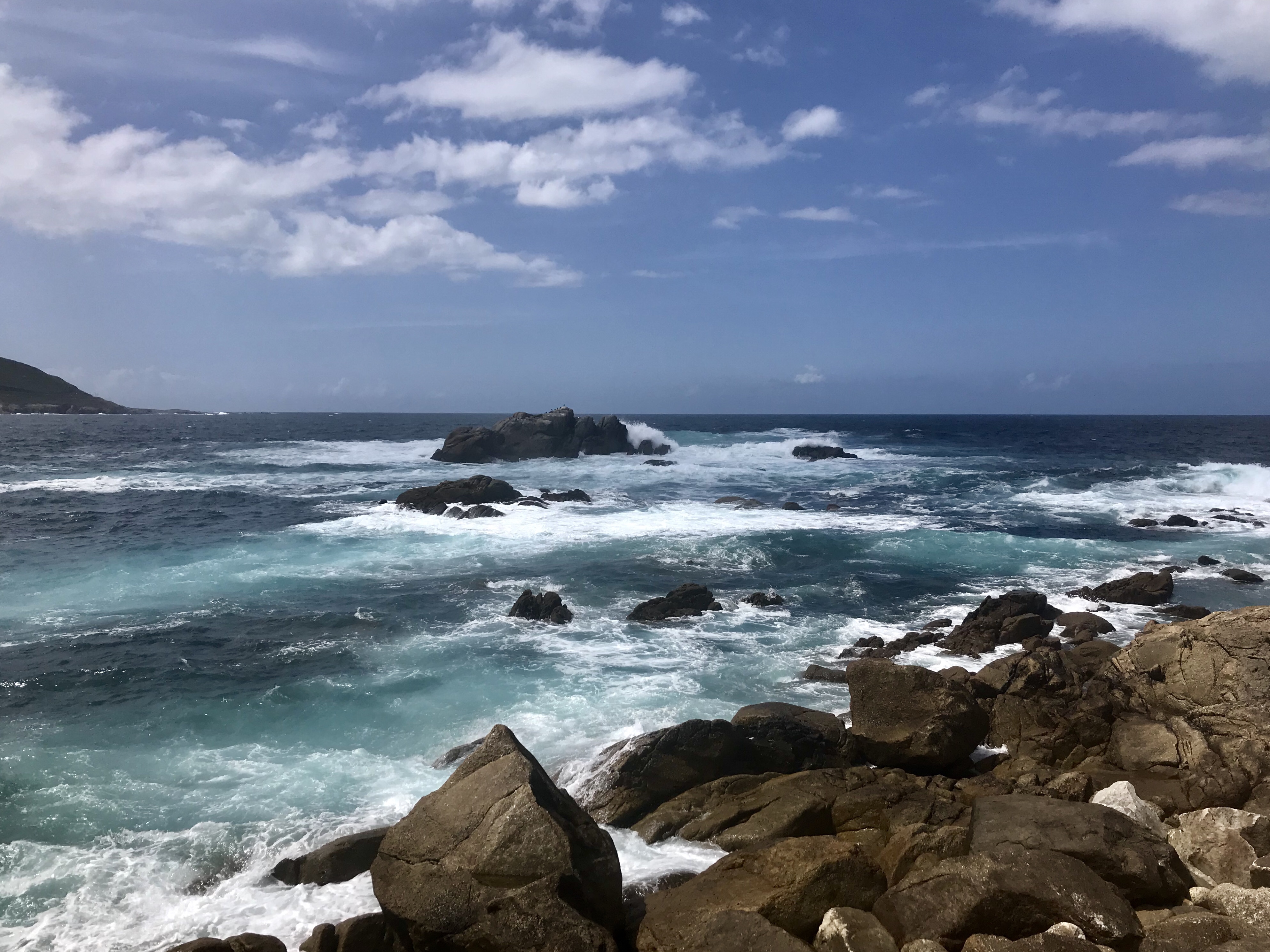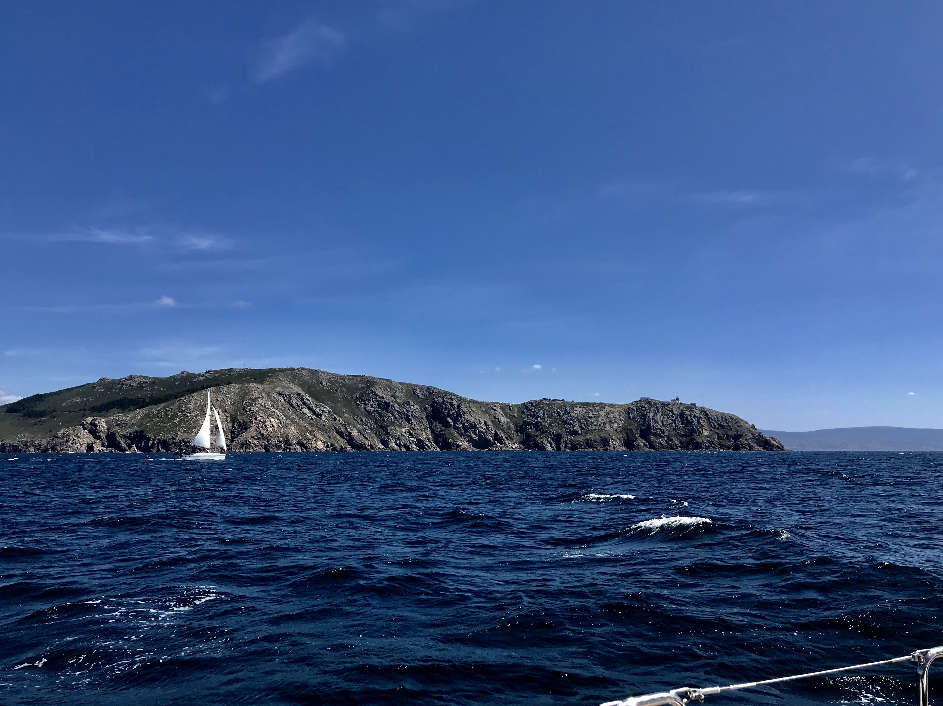 Seit Gijon begleitet uns dieses Gebirge in Galicien. Landeinwärts könnte man denken, wir sind in Norwegen, Österreich oder auch auf einem See. Oder doch Schweden? Weiße Strandabschnitte lockern die Küstenlinien auf. Unser Kurs ging von Gijon über La Coruna, einer Großstadt in der wir 7 Tage verbrachten, vorbei am Kap „Cabo-Finistere“, den westlichsten Punkt von Spanien. Wer dieses Kap umrundet ist nun endgültig auf dem offenen Atlantik angekommen. Zur Zeit ein Paradies, was bekanntlich so nah an der Hölle liegen kann.🤨