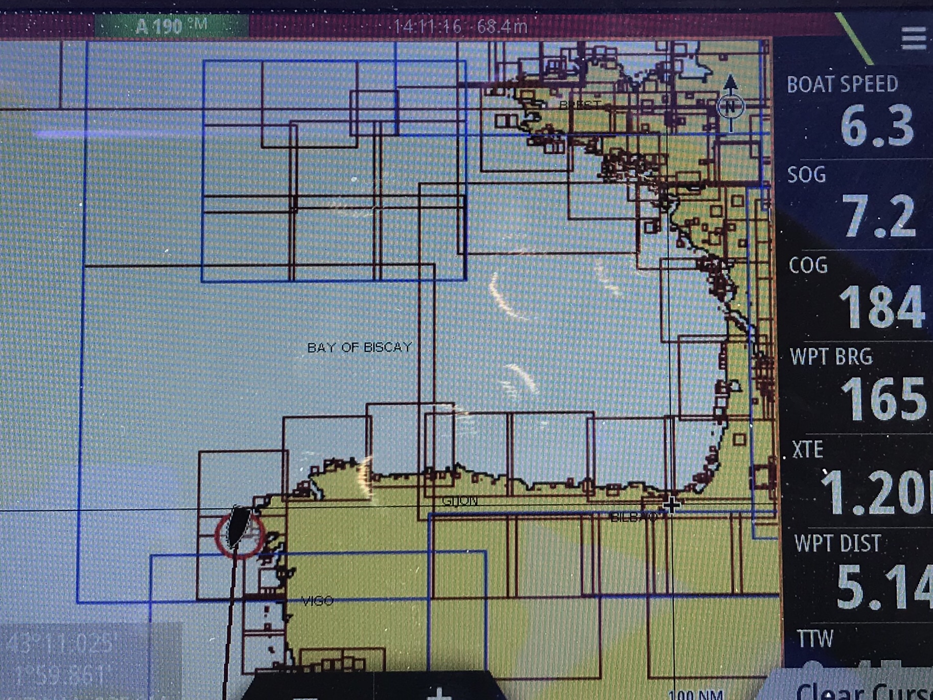 Vielleicht schon morgen erreichen wir Vigo. Danach geht es dann an der portugiesischen Küste weiter. Dann berichten wir wieder.