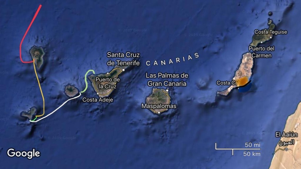 Wenn es für uns als Ziel die Kanaren würden, dann sind das ca. 3000 Seemeilen (5556km) von Hooksiel gerechnet. In fünf Monaten Segelzeit wären das rund 20 Seemeilen pro Tag. Bleibt man also einen Tag im Hafen, sind es schon am nächsten Tag 40sm, usw.🧐